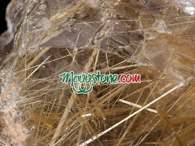 3. Độ ánh kim của tinh thể rutile: Hàng cao cấp có độ ánh kim cao, soi dưới ánh đèn hoặc mang ra ánh nắng ngoài trời rõ nét, các tinh thể tóc ánh kim mạnh. Hàng phổ thông có nước nhạt nhòa chủ yếu do nước đá đục nên không có ánh kim